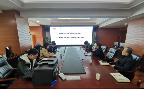 京东湖南分公司负责人介绍了过去一年“数正云”在国管局及各省落地实施情况,并演示了“数正云”相关功能架构。邓东亮介绍了省局信息化建设有关情况。双方就“数正云”未来在我省落地实施的可行性进行深入交流。