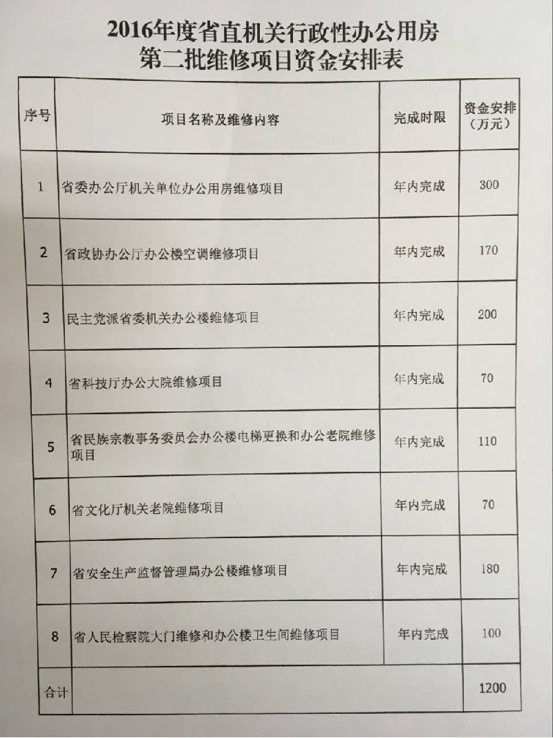 名称: 葡京赌场 关于下达2016年度省直机关行政性办公用房第二批维修计划的通知
