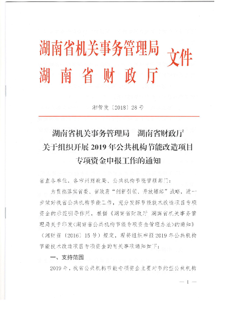 关于组织开展2019年公共机构节能改造项目专项资金申报工作的通知