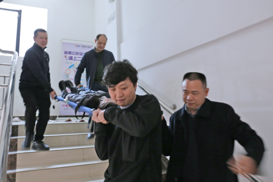 此次演习通过模拟办公楼突发火情,开展了现场管制、查明火点、消防自救呼吸器佩戴、人员疏散、医疗救援、灭火演练等科目。下午2点30分,演习正式开始,参演同志按照消防应急预案,有条不紊、防护规范地开展行动,整个演练过程环环相扣、井然有序,全面演示了预警、决策、调度、救援、善后等各个环节,达到了实战演练效果。