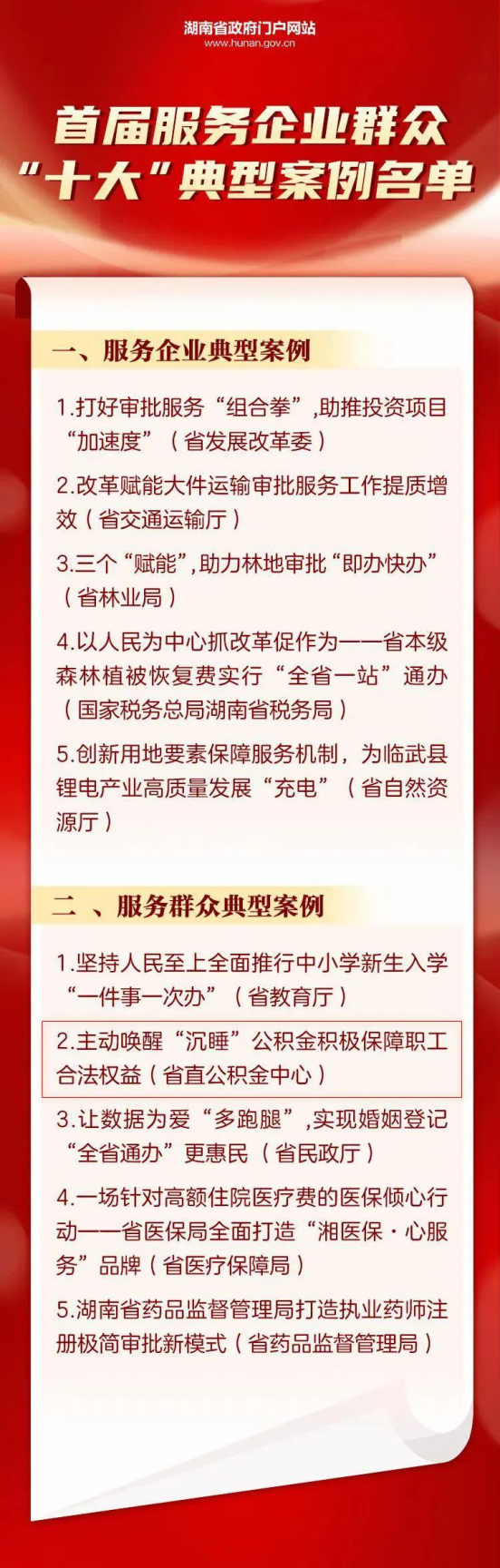 省直公积金中心案例入选!湖南省服务企业群众“十大”典型案例发布